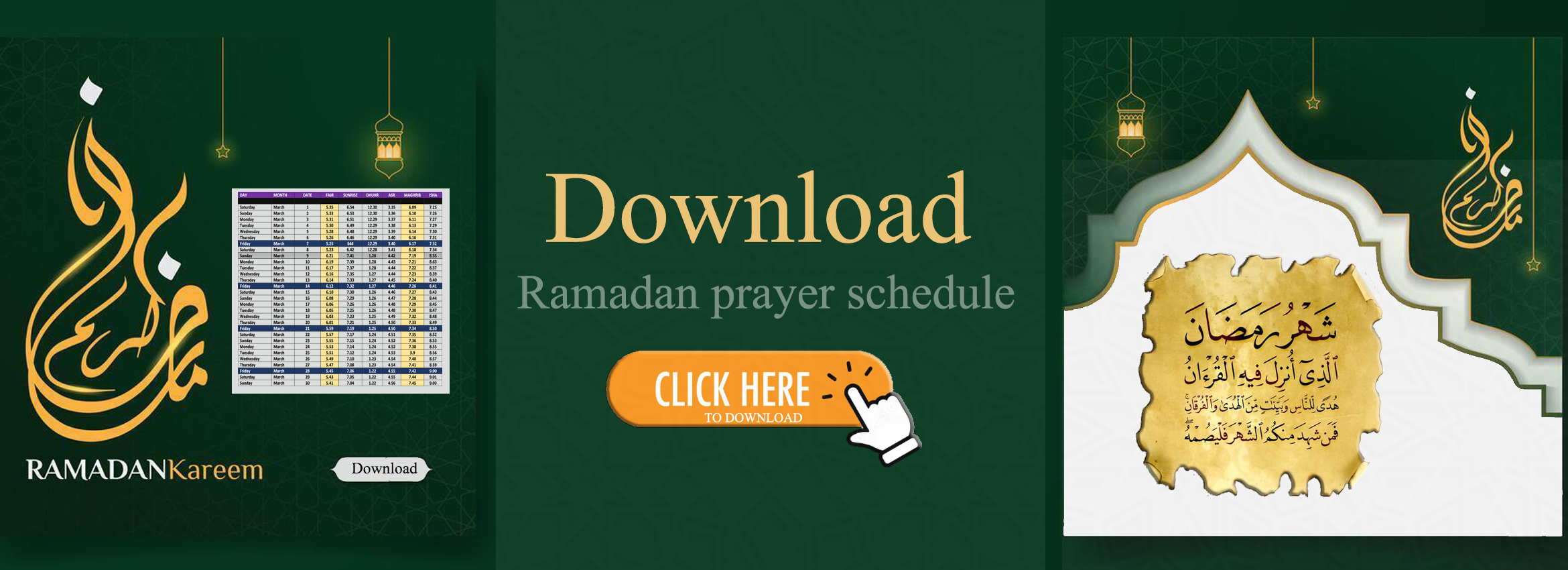 FAJR: 6:45 am | DHUHR: 1:45 pm | ASR: 5:15 pm | MAGHRIB: 7:19 pm | ISHA: 9:00pm
